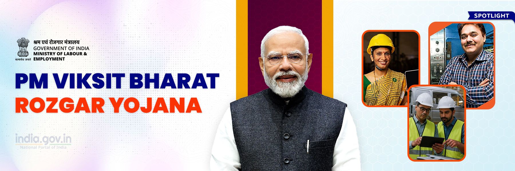 Pradhan Mantri Viksit Bharat Rozgar YojanaTo achieve the vision of Viksit Bharat@2047, the Government of India in the Budget 2024-25 announced Employment Linked Incentives Scheme as part of the "Prime Minister's Package for Employment and Skilling". The scheme is named as Pradhan Mantri Viksit Bharat Rozgar Yojana. The scheme consists of two parts-it provides assistance to employees and support to the establishments for making the first timer employee more productive and incentivizes those establishments that generate additional employment. Further, the scheme will complement the 'National Manufacturing Mission' in promoting entry of new industries as well as scaling up of the existing industries particularly in labour-intensive manufacturing sectors. The Pradhan Mantri Viksit Bharat Rozgar Yojana will be implemented by the Ministry of Labour & Employment through Employees Provident Fund Organisation (EPFO), a statutory body under the Employees' Provident Funds & Miscellaneous Provisions Act of 1952. The Union Cabinet on 1st July 2025 approved the Employment Linked Incentive Scheme, with an outlay of ₹99,446 Crore, the scheme aims to incentivize creation of more than 3.5 Crore jobs in the country, over a period of two years. The benefits of the scheme would be applicable to jobs created between 1st August 2025 and 31st July, 2027. The scheme will provide incentive of up to ₹15,000 in two instalments to newly employed youth and upto 3000 per month per new employee to employers for creation of new job opportunities. All payments to the First Time Employees under Part A of the Scheme will be made through Direct Benefit Transfer (DBT) mode using Aadhaar Bridge Payment System (ABPS). Payments to the Employers under Part B will be made directly into their PAN-linked Accounts. Employers can now visit Pradhan Mantri Viksit Bharat Rozgar Yojana portal ( https://pmvbry.epfindia.gov.in or https://pmvbry.labour.gov.in) and complete one-time registration process. All first timers have to generate Universal Account Number (UAN), through Face Authentication Technology (FAT) available on UMANG App.